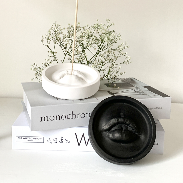 Le porte-encens en forme de bouche est un objet mystique et zen, fabriqué en résine acrylique de haute qualité. Disponible en blanc ou noir, il s’intègre facilement dans toute décoration intérieure. Sa forme unique ajoute une touche d’excentricité, avec un trou central pour l’encens. L’encens dégage une fragrance apaisante, diffusée à travers les lèvres, créant une ambiance relaxante. Cet objet artistique offre une expérience sensorielle unique et est idéal pour la méditation ou la détente.