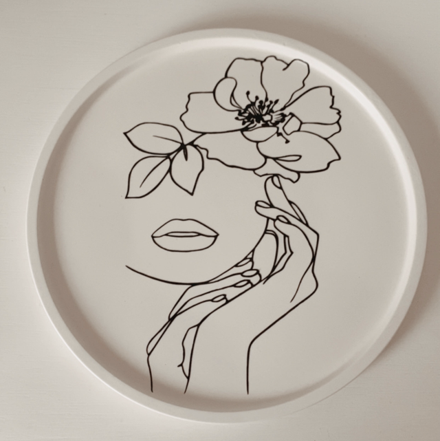 Plongez dans l'élégance florale avec notre plateau, orné d'un visage délicatement fleuri. Une fusion artistique entre nature et beauté, ce plateau apporte une touche enchanteresse à votre décoration. Laissez-vous séduire par cette pièce à la fois fonctionnelle et artistique.