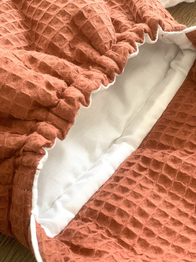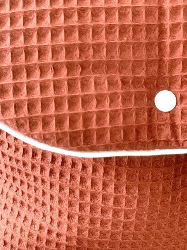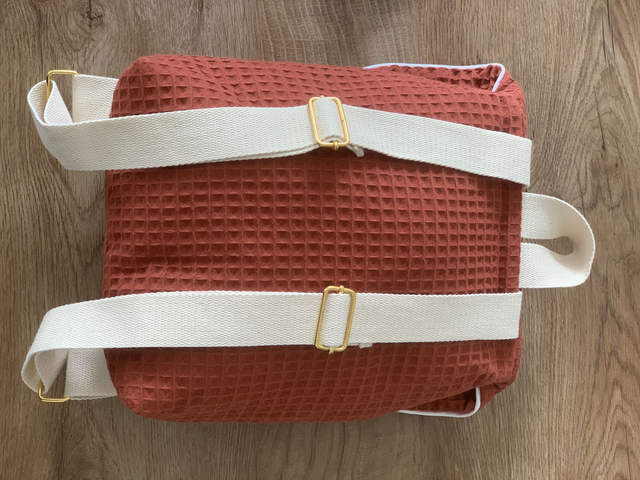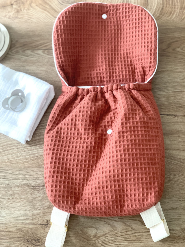 Idéal pour accompagner les premières aventures des tout-petits, ce sac à dos est spécialement conçu pour la maternelle ou la crèche. Confectionné dans un tissu gaufré nid d’abeilles doux et souple, dans une teinte terracotta chaleureuse, il allie praticité et esthétique. Ses bretelles réglables s’ajustent parfaitement à la morphologie des jeunes enfants, tandis qu’un petit anneau permet de l’accrocher facilement au porte-manteau de la crèche. L’intérieur est équipé d’un élastique ingénieux, pensé pour que les tout-petits puissent ranger eux-mêmes leur doudou, tétine ou petit change et refermer le sac en toute autonomie.