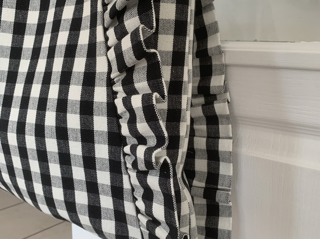 Alliez élégance intemporelle et finesse artisanale avec ce sac à gros carreaux Vichy noir et blanc, sublimé par de délicats volants sur chaque côté.
